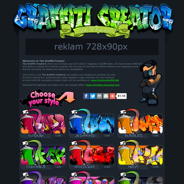 Design your own graffiti logo for free.. Welcome to graffiti text creator online. We created this free graffiti generator web app to help you easily to create and draw your graffiti name or your first graffiti. Design your own graffiti logo for free. The graffiti creator© app and all content made from it is copyright protected by mikael wigen. Try out our mock 3d logos, and if that doesn't work, just add a drop shadow :) prev. 17.10.2011 · créez des graffiti en ligne grâce à ce logiciel gratuit. This is a preview image.to get your logo, click the next button.